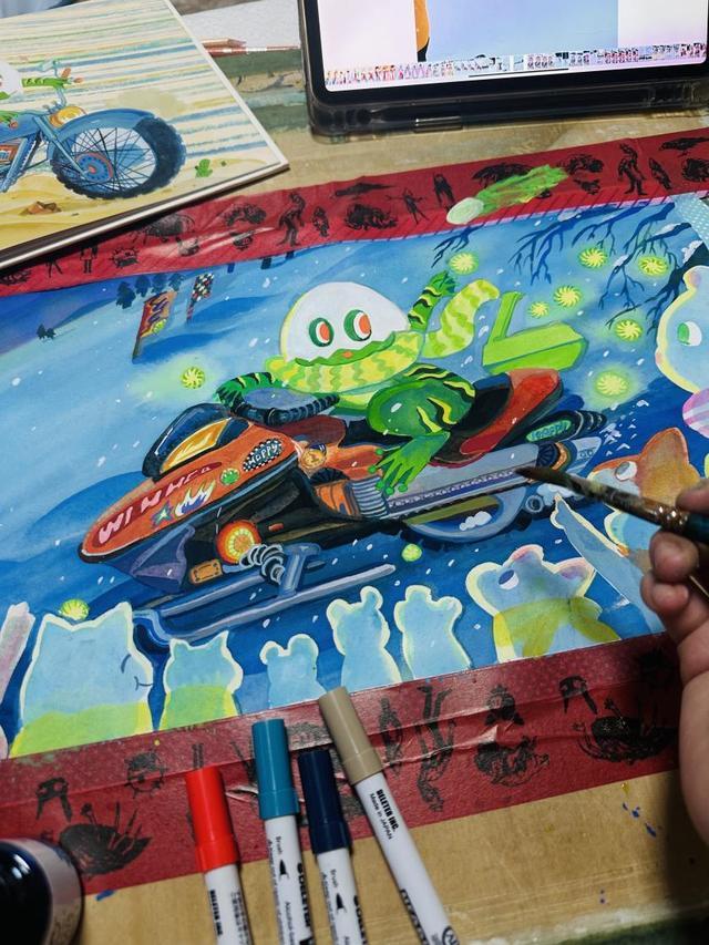尽管本职工作占据大量时间,田子千依然坚持每晚19点至23点的创作习惯。“时间有限,但灵感。”她将日常观察转化为创作养分,比如游乐场的尖叫、窗外的月光,甚至一本幽默的绘本,都可能成为下一部作品的起点。